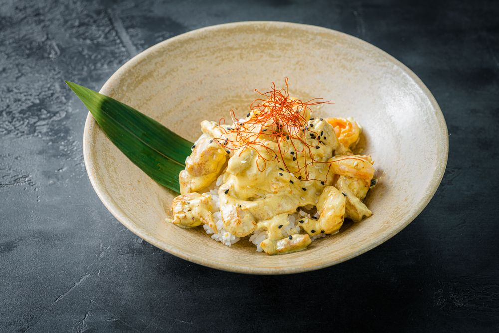 Рис с креветками и курицей в сливочном соусе карри