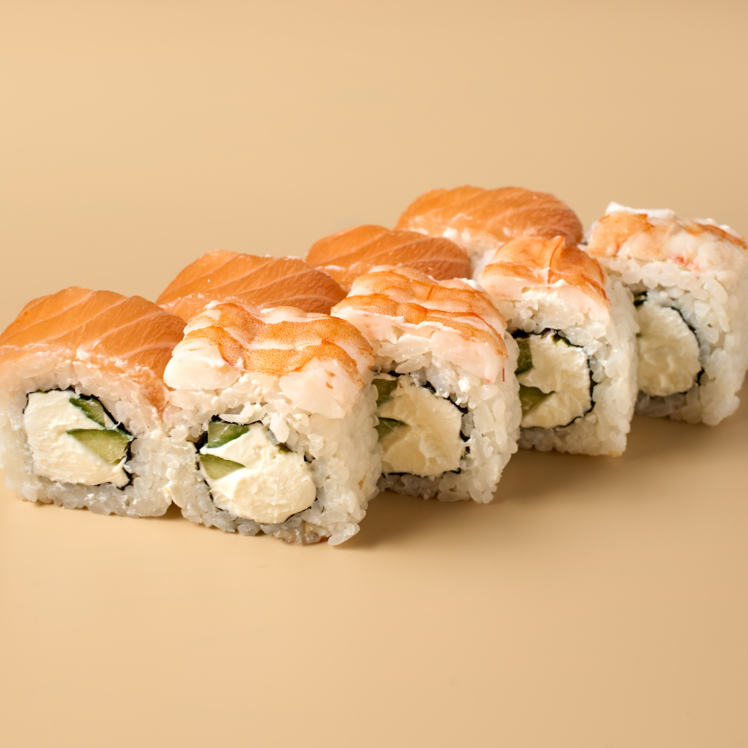 Лосось, тигровые креветки, сливочный сыр, свежий огурец