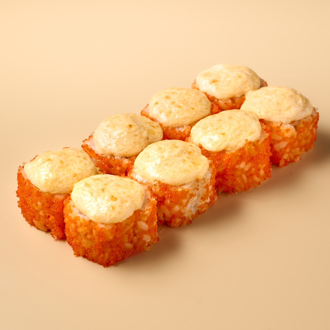 Копченый угорь, японский майонез, свежий огурец, тобико, соус для запекания
