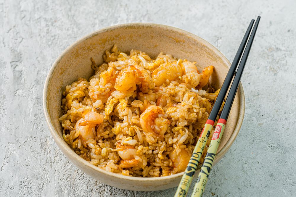 Жареный рис с креветками