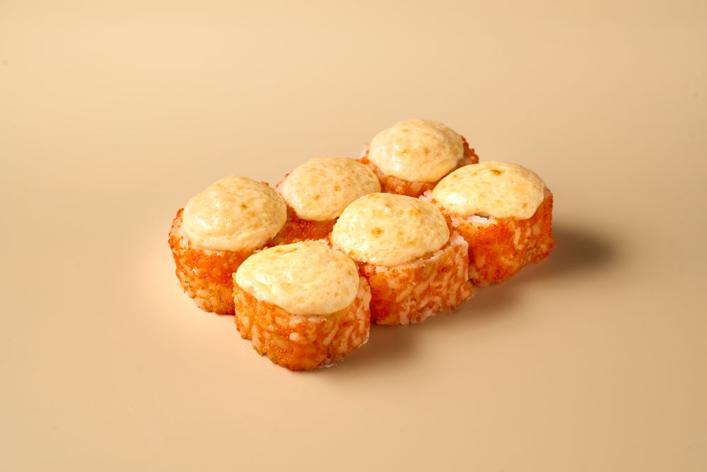Ингредиенты:рис, вода, уксус рисовый, сахар, соль, лимон, водоросли нори, сыр сливочный, огурец, лосось, икра летучей рыбы, майонез, сыр гауда, соус кимчи, чеснок